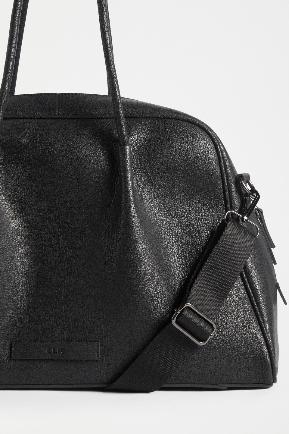 The Esna Bag is a spacious vintage-inspired weekender bag, crafted from durable Buffalo leather which wears beautifully with age. Versatility is at the heart of its design, with dual carry options: grab the fixed shoulder straps or switch to the removable nylon strap for hands-free ease. From departure lounge to desk, the Esna Bag is set to be your new best friend. Offered in classic Black leather.